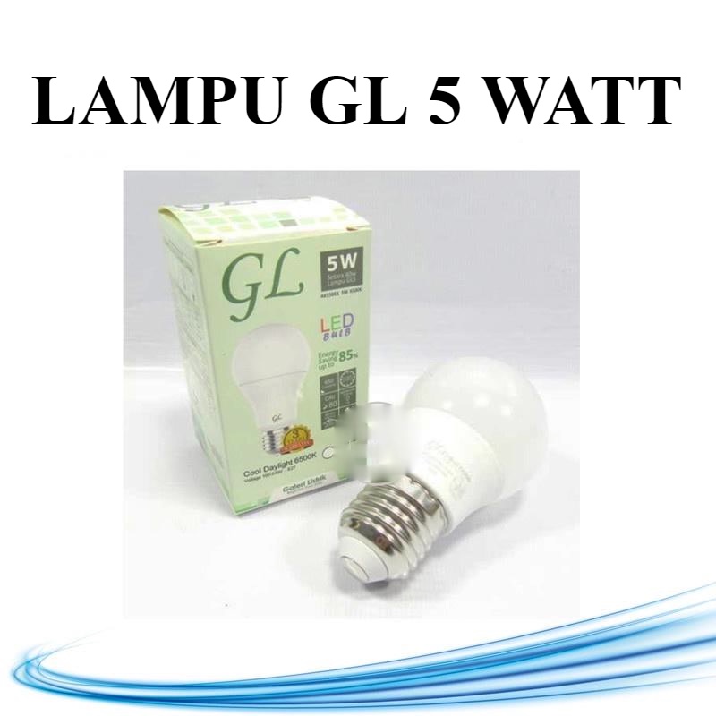Lampu led bulb bohlam Galeri listrik (GL) 5 watt - cahaya putih - Setara dengan 35w lampu GLS - 430 Lumens, terbukti lebih terang. - Mengutamakan KUALITAS ideal untuk ruang kamar, teras, ruang tamu, ruang kerja, ruang kantor, dll. - Bisa menghemat listrik sampai dengan 85% - Bebas bahaya merkuri, radiasi IR & UV yang berbahaya bagi mata Spesifikasi produk : - 430 lumens - 15.000 jam tahan lama - Beam angle 200 - voltage 100-240v - Fitting : E27 - Membeli berarti setuju