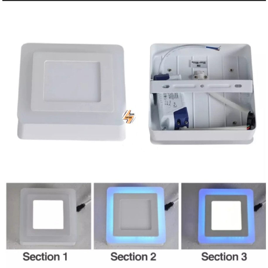 Lampu Panel LED 2 Warna 6 Watt White + 3 Watt Biru Kotak Outbow