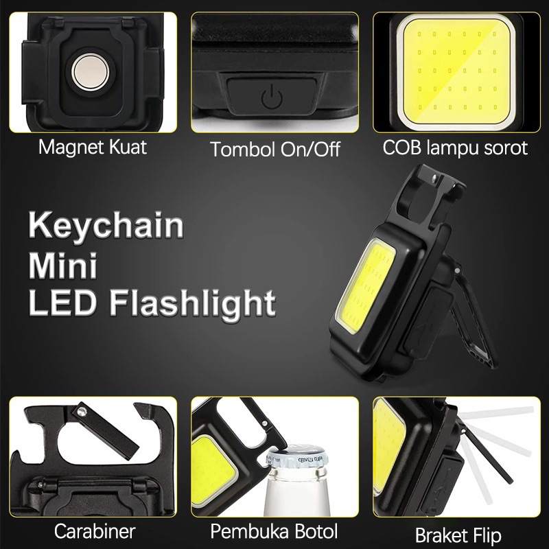 Lampu LED Emergency Gantungan Kunci Multifungsi Lampu Camping Cas USB