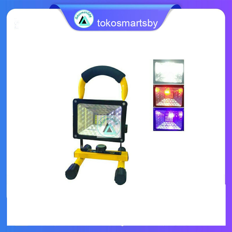 Detail Lampu LED Kap Sorot 30 Watt Baterai Outdoor Portable RGB W 804