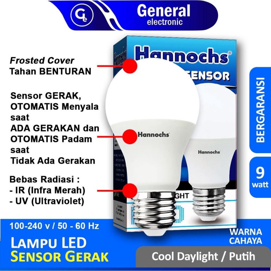 Detail Lampu Led Motion Sensor Gerak Otomatis Hannochs 5W , 9W , 13W Cahaya Putih