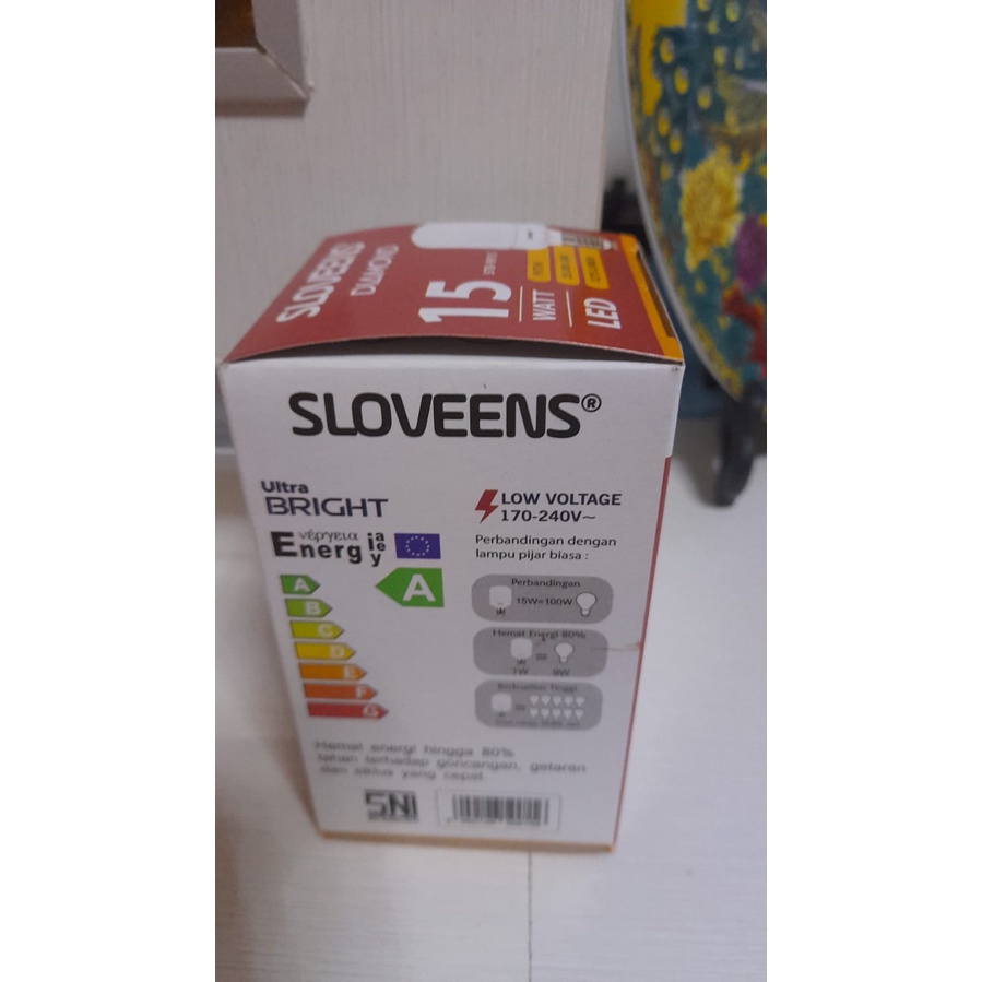 Merek : SLOVEENS Daya : 15 Watt Warna Cahaya : Putih Lumen : 1275 Hemat energy 80% Tahan terhadap goncangan getaran dan siklus yh cepat