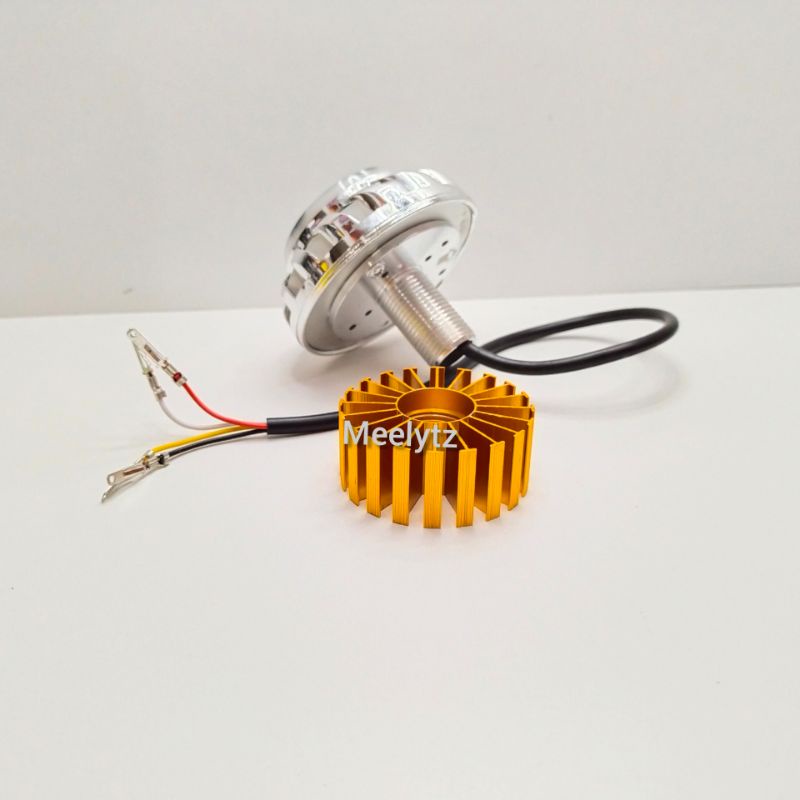 memiliki 4 kabel : -Kabel hitam : massa/Ground (-) -Kabel kuning : angel aye (+) -Kabel merah : lampu jauh atau dekat (+) -kabel putih : lampu jauh atau dekat (+)