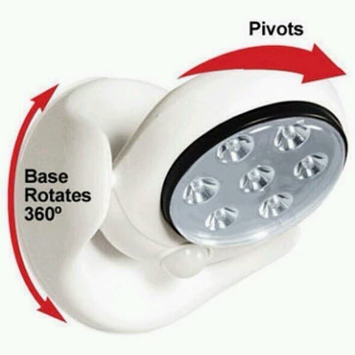 Fitur: - 7 Lampu LED yang terang - Tanpa kabel, hanya perlu 4 baterai x AA (belum termasuk baterainya) - Bisa digantung - 360 degrees rotary stand & 180 degrees rotary light head - Cocok untuk indoor maupun outdoor: kamar tidur, ruang basement, lemari.