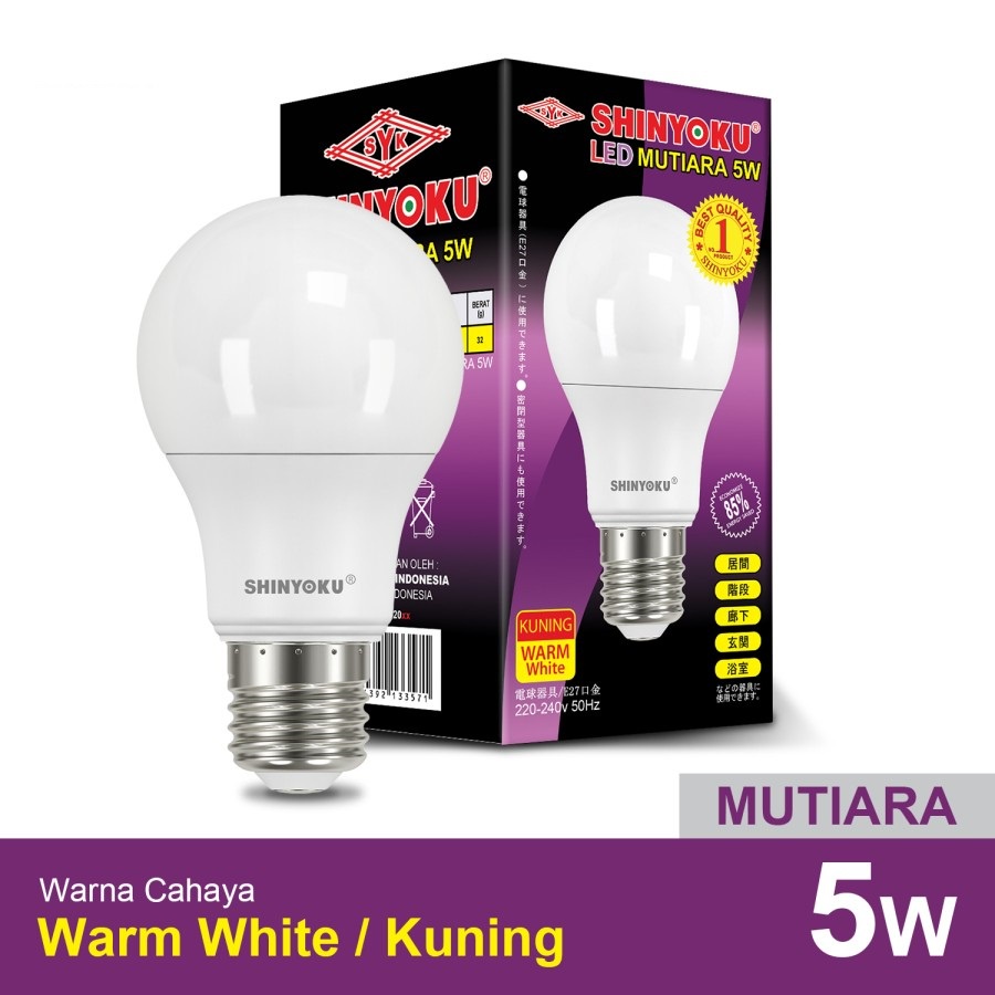Detail Lampu Led Shinyoku Mutiara 5 Watt Kuning Garansi 1 Tahun / Lampu Shinyoku 5w / Lampu Bohlam 5 Watt