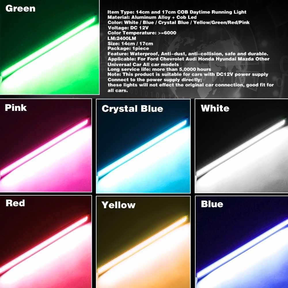 Spesifikasi Tipe LED COB LED Temperatur Warna Putih: Cool White 6000-8000 K Biru: Crystal Blue Voltase 12 V DC Daya / Power 2 x 6 W Durasi Hidup Waktu penggunaan terus menerus: 10.000 jam Material Karet Silikon Dimensi 17 cm Lain-lain Suhu permukaan maksimum: 40 Derajat C