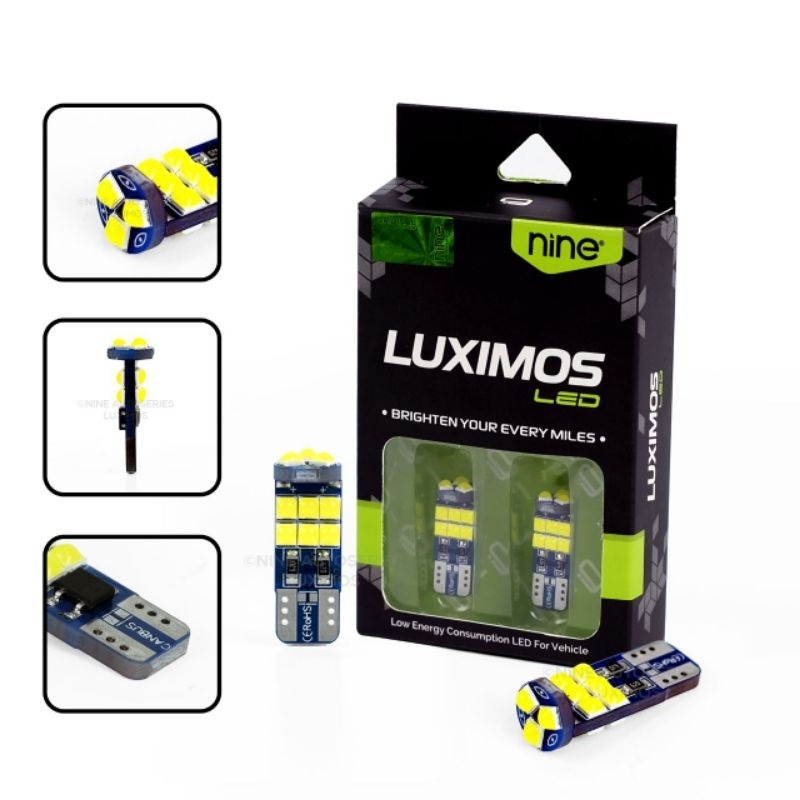 SPESIFIKASI : MEREK : LUXIMOS NINE SOKET : T10 SB2 CREE JUMLAH LED : 15 TITIK LED CREE LUMENS : 1200 LM VOLTASE : 12V-24 VOLT AC - DC DAYA : 2 WATT WATERPROOF : IP68 LED CHIP : 3030 CHIP WARNA : BIRU, MERAH, KUNING, PUTIH, HIJAU, PURPLE, ICE BLUE DIAPLIKASIKAN UNTUK MOTOR DAN MOBIL