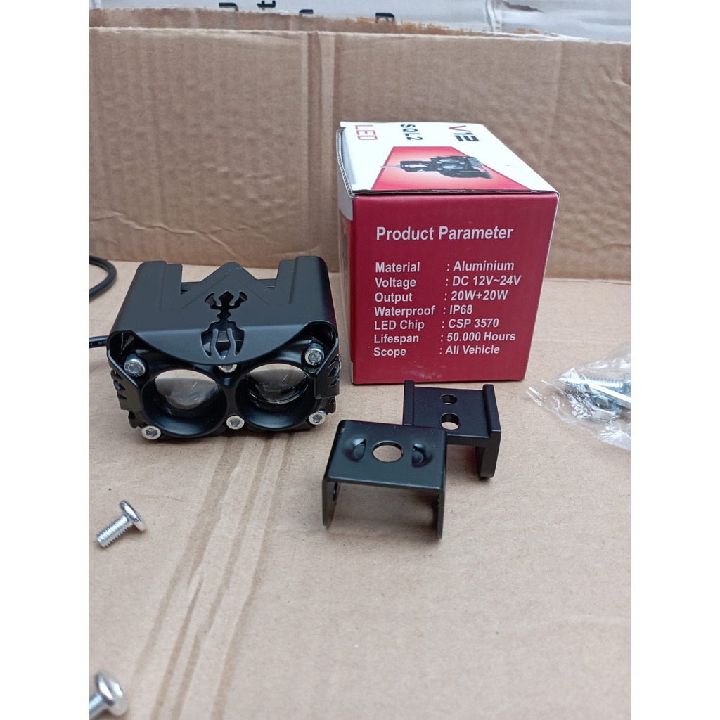 Merk : SQL V12 Model : Q6 2 MATA Input : DC 9-32V Daya : 25 WATT Type Led : CSP Temp : 3000 - 6000K Warna Cahaya : Putih dan Kuning 3000 DAN 6000 K Jangkaun Cahaya : +/- 100meter Waterproof : Ya IP68 BAHAN : ALUMUNIUM