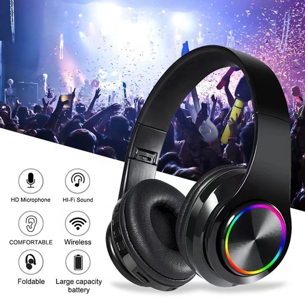 Komputer & Aksesoris > Gaming > Gaming Headset > Lampu LED Warna-warni B39 Headset Bluetooth HiFi Stereo Headphone Bluetooth dengan Mikrofon Mendukung Panggilan HD Kartu SD AUX Earphone Bluetooth