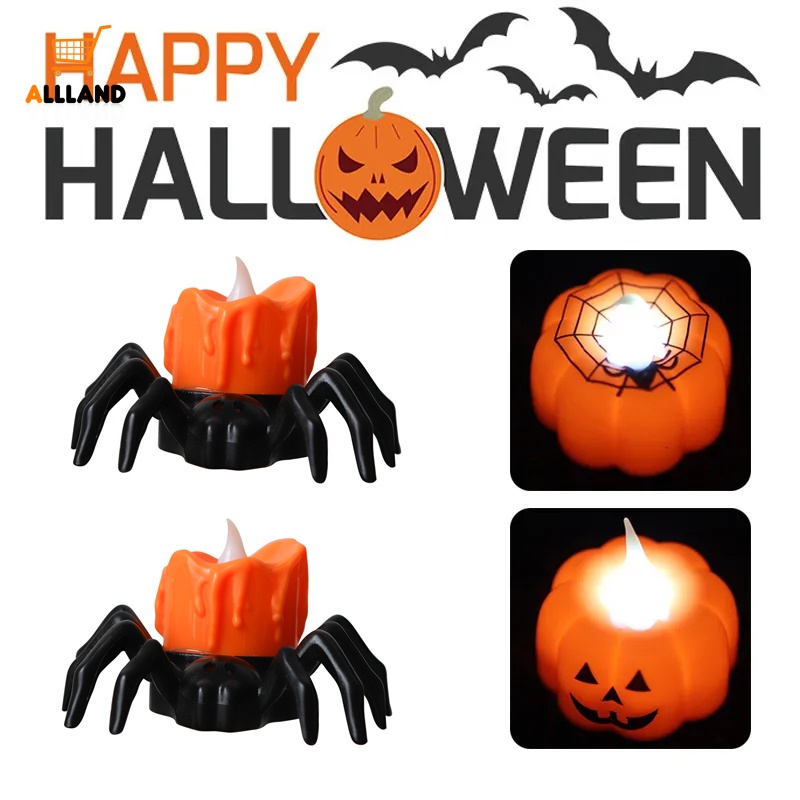 Lampu Lilin Elektronik Bentuk Laba-Laba LED Kreatif/ Lampu Malam Hias Tenaga Sel Tombol/ Halloween Horror Scene Setting Ambient Lights