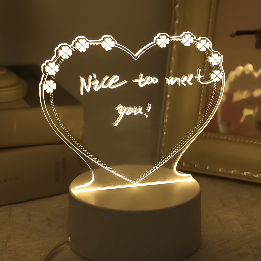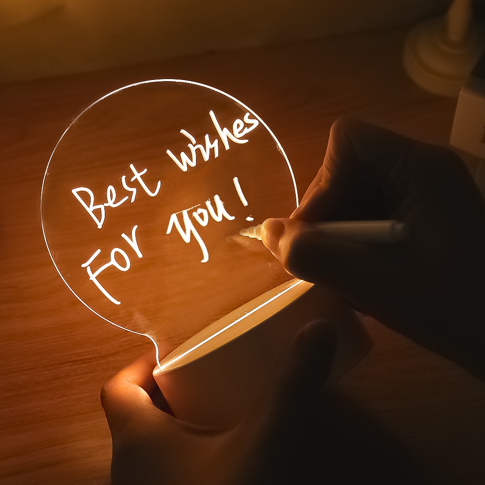 Detail Lampu Malam LED 3 Warna Transparan Bahan Akrilik Bisa Dihapus Untuk Memo / Pesan