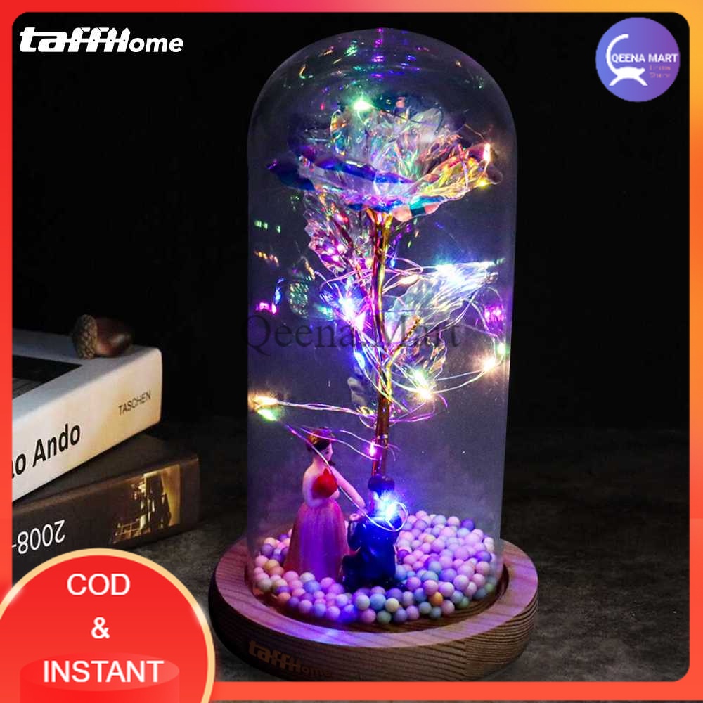 1 x TaffHOME Lampu Meja Hias LED Galaxy Rose Eternal Colorful Light - MSFRG-003 Spesifikasi Tipe Baterai 3 x AAA (Baterai Tidak Termasuk) Material Kaca dan Kayu Dimensi 11.5 x 11.5 x 21 cm Lain-lain Mode: Statis