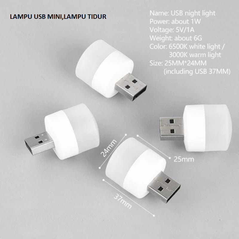 Jenis : Lampu LED Bentuk Bulat Bahan : Plastik Jenis Plug :usb