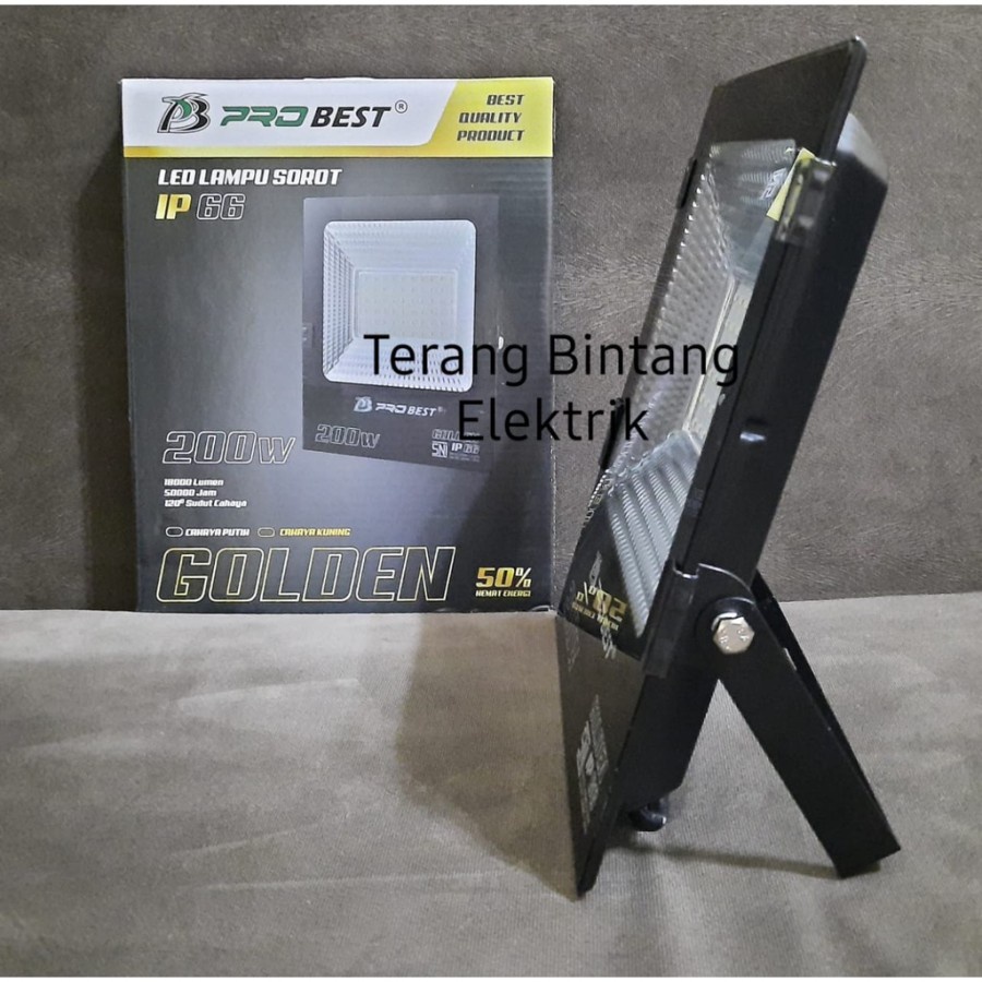Lampu sorot LED / Lampu tembak LED GOLDEN PROBEST SERIES Golden Probest merupakan seri terbaru lampu sorot populer merk Probest Kini hadir dalam tampilan baru dengan body lebih slim - Hemat energi 50% - IP 66 - Ketahanan 50.000 jam - 120' angle -4500 lumens -spesifikasi lampu 15,5cmx12cm