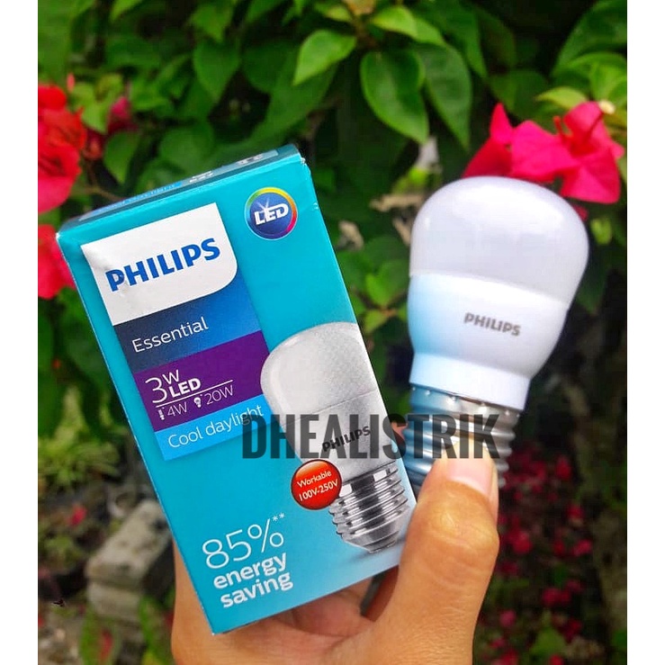 Type LED Essential Philips Masa pakai lampu = 8.000 jam Fitting = E27 Hemat energi Tidak bisa diredupkan / diterangkan (Not Dimmable) Terbuat dari plastik sehingga tidak mudah pecah