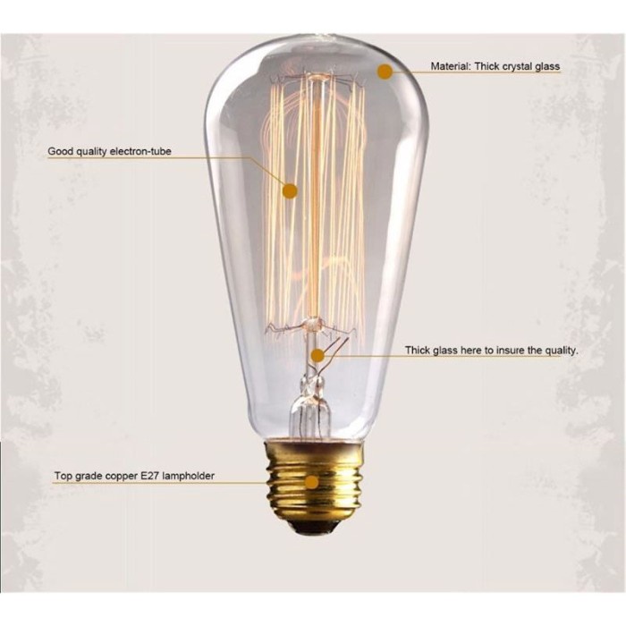 Detail Lampu Pijar Vintage Edison Lamp Model ST64 60 Watt Filamen Warm White