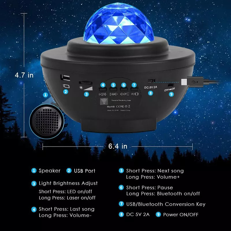 Detail Lampu Proyektor Langit tidur Malam Berbintang 2 In 1 untuk Pesta/Lampu Poyektor Dengan Speaker Langit Malam Bintang