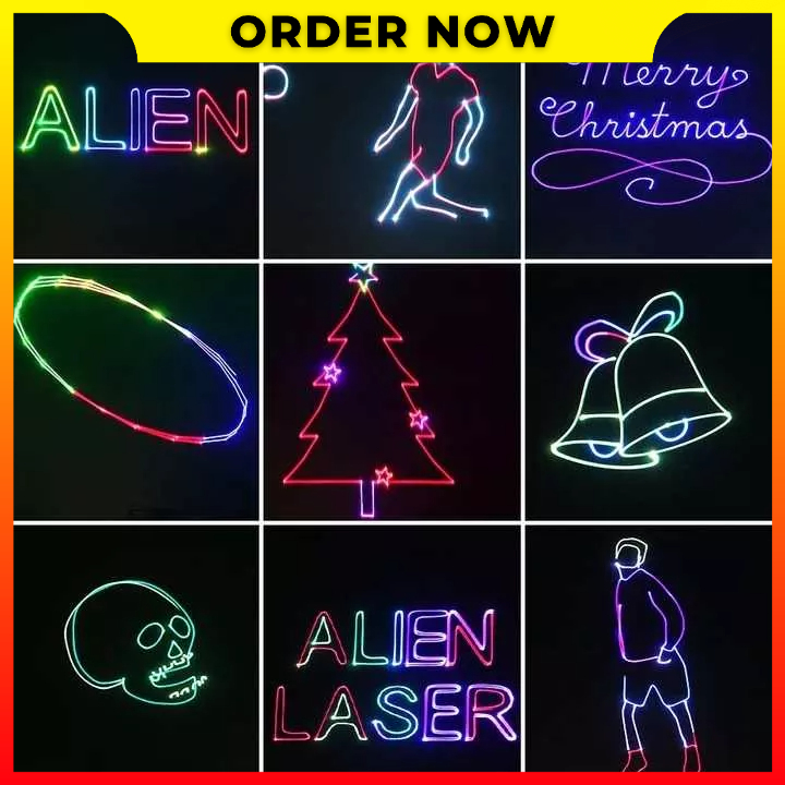 Video perkenalan produk Lampu Proyektor Sinar Laser Animasi Penuh Warna Bluetooth Remote Control DMX512 1W Alien F6A - 7CLL67BK. Sumber: Shopee.