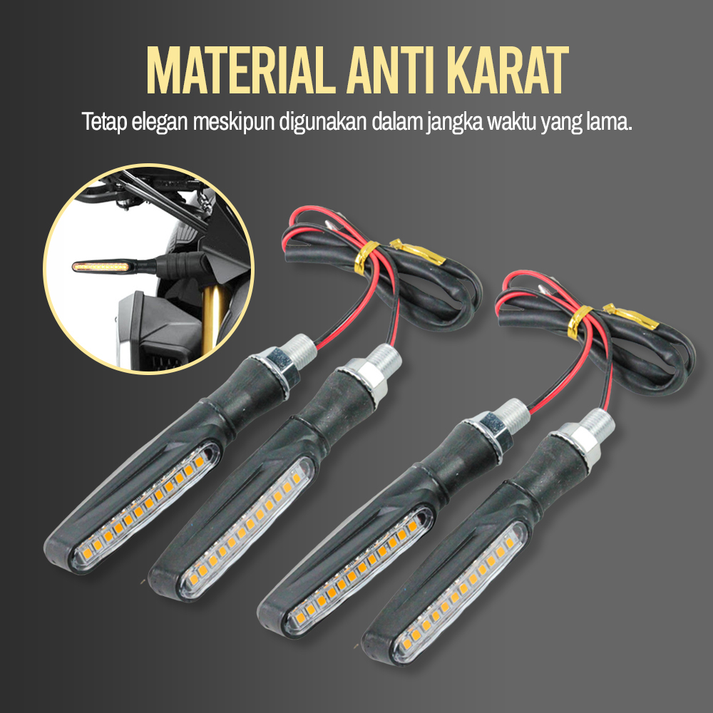 Fitur Menggunakan 12 LED Lampu sein ini terdiri dari 12 buah LED dengan tingkat kecerahan yang sangat baik. Karena digunakan sebagai penanda motor saat ingin berbelok maka sudah pasti lampu ini memiliki cahaya berwarna kuning.