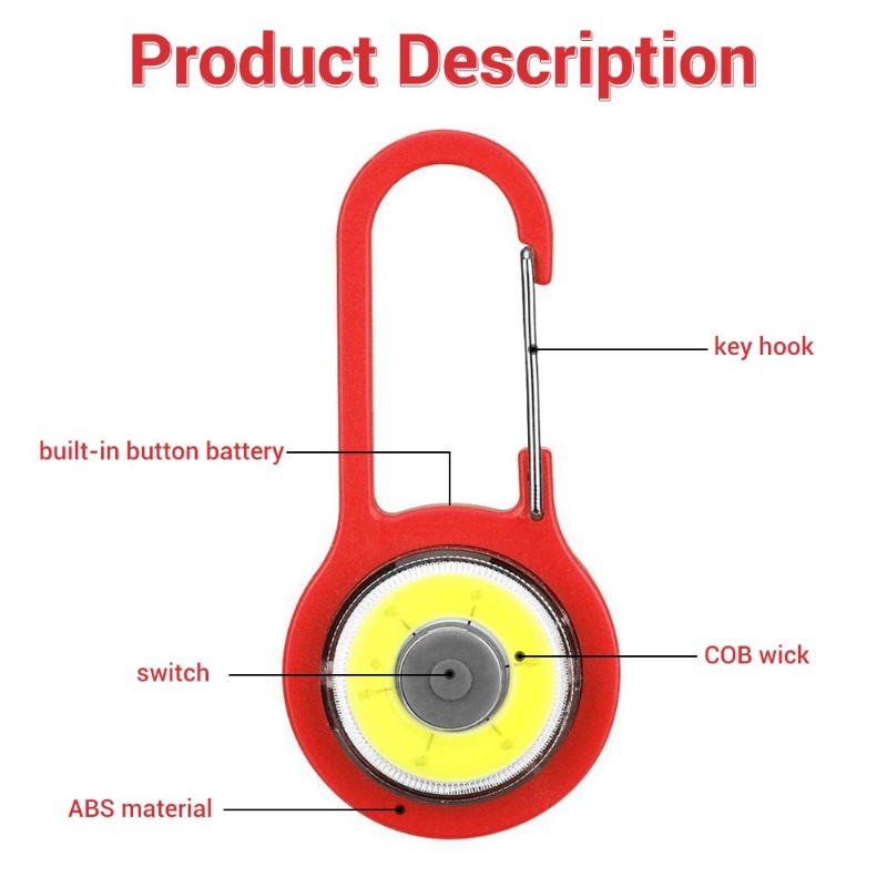 Detail Lampu Senter COB LED Portable Dengan Carabiner Dan Gantungan Kunci Untuk Camping