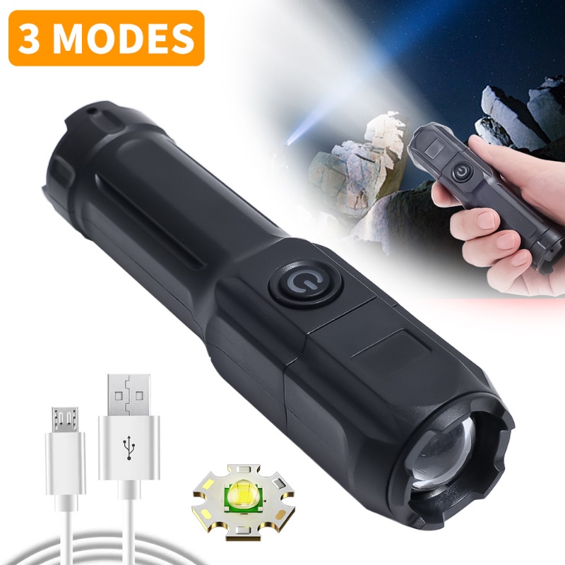 Paket Termasuk: 1 x Senter 1 x Kabel Pengisian Daya