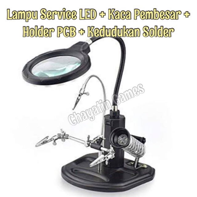 LAMPU SERVIS / SERVICE LED FLEXIBEL DENGAN KACA PEMBESAR 5x DAPAT MEMPERMUDAH TEKNISI UNTUK MELIHAT JALUR-JALUR KECIL PADA PAPAN PCB + KEDUDUKAN SOLDER + PCB HOLDER JUGA SERTA BISA JUGA UNTUK DIJADIKAN LAMPU BELAJAR / LAMPU BACA.