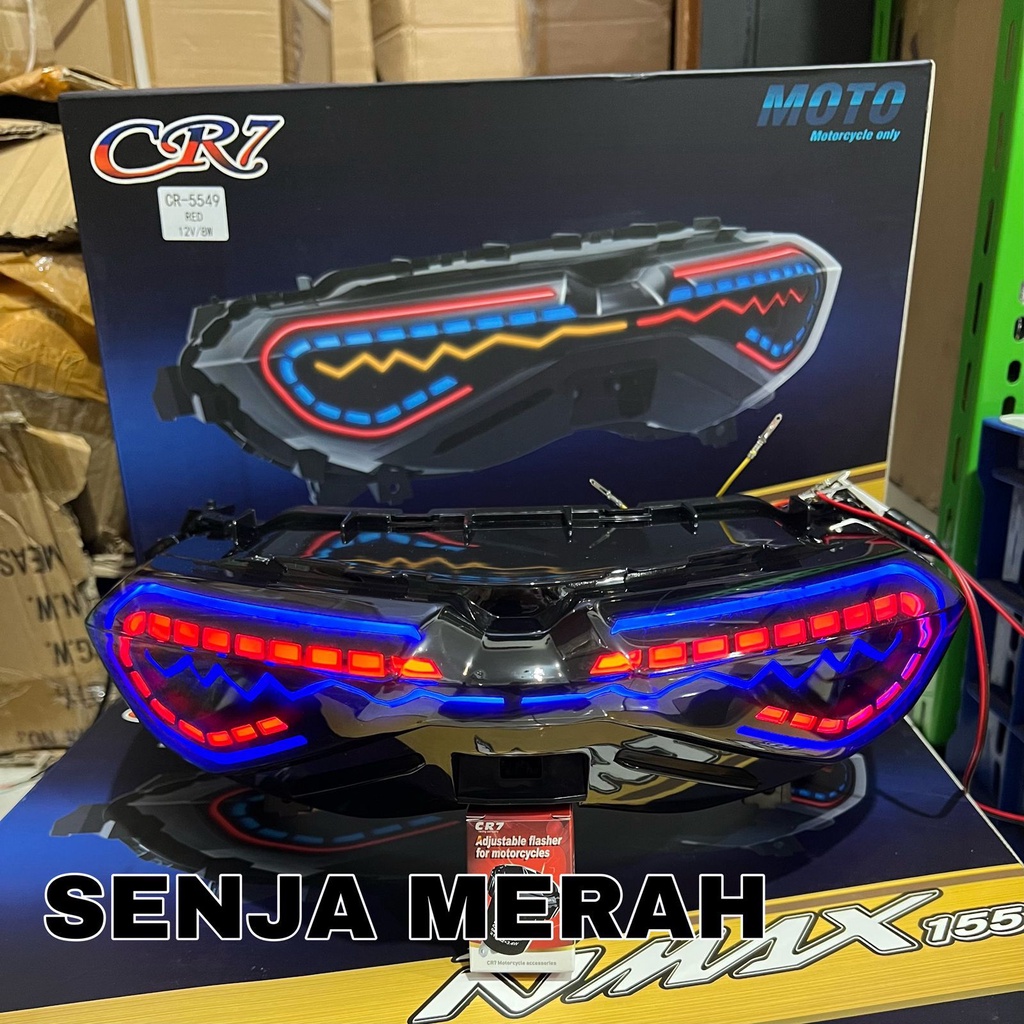1.Lampu senja Biru & Senja Merah 2.Lampu Rem Berkedip 3. Lampu sein Running 4. Merk CR7