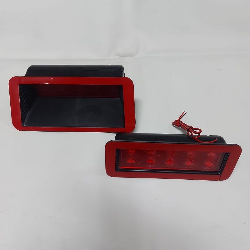 lampu stop rata panjang bodi 17cm tinggi mika lampu pas di tengah 6cm. yang stop miring dimensi panjang : 18,5cm tinggi :6cm bohlamp nyala led 5 titik . lsg tempel kaca pakai lem bolak balik
