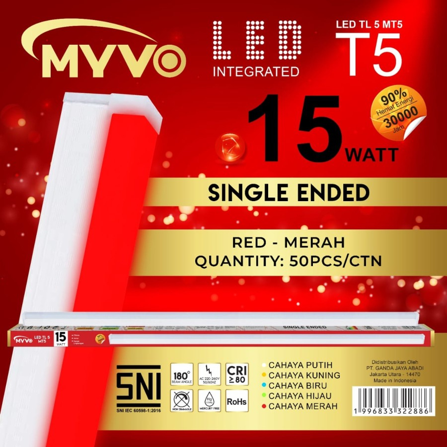 T5 Lampu Generasi Baru LED Compact Fixture Item Voltage T5 - 15 Watt - Brand MYVO - Tegangan Input AC 180v-240v 50/60Hz - Panjang 90cm - Tersedia warna: Putih - Isi dalam Kemasan 1 lampu TL 1 Kabel Jek 10cm 1 Pasang Socket 1 Pasang Scrub
