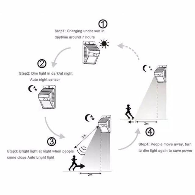 Detail Lampu Taman 30 LED Solar Sensor GERAK Tenaga Surya / SOLAR POWERED LED