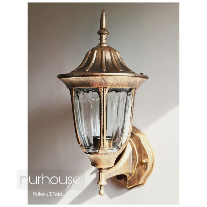 Lampu dinding 1007 AB bahan dari besi cor dan kaca, fiting ukuran E27. Bisa menggunakan bolam apa saja.