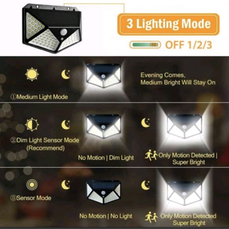 WARNA LED WHITE BISA MENYALA TERANG 6-8 JAM DENGAN MODE 3 Lampu dengan tenaga surya ini bisa berfungsi sebagai lampu pagar / lampu taman / lampu koridor / lampu dinding / Lampu Emergency.
