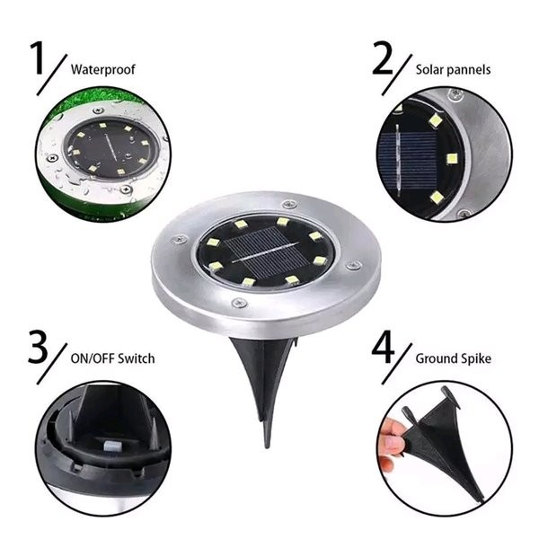 Detail Lampu Tanam Taman Solar Tenaga Surya Outdoor 8 LED Waterproof - 8 LED - Kenji Shop