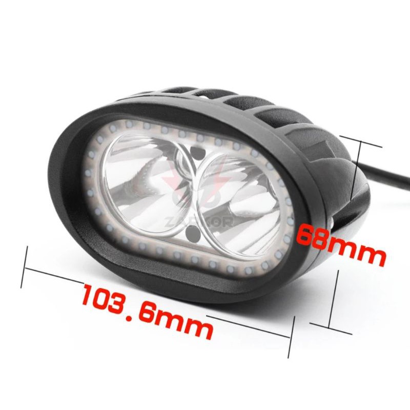 Menggunakan 2 Titik LED Cree Warna Putih Daya 20 Watt. Tersedia Pilihan Warna Ring Merah & Biru