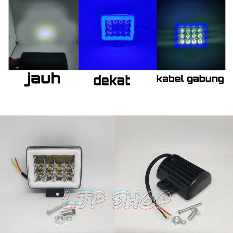 Menggunakan 12 Mata LED Cahaya Sorot 2 Mode : Kedip dan Diam Senja Drl Biru Cahaya PUTIH Daya : 36 Watt Tengangan 12 V Bahan Plastik Waterproof