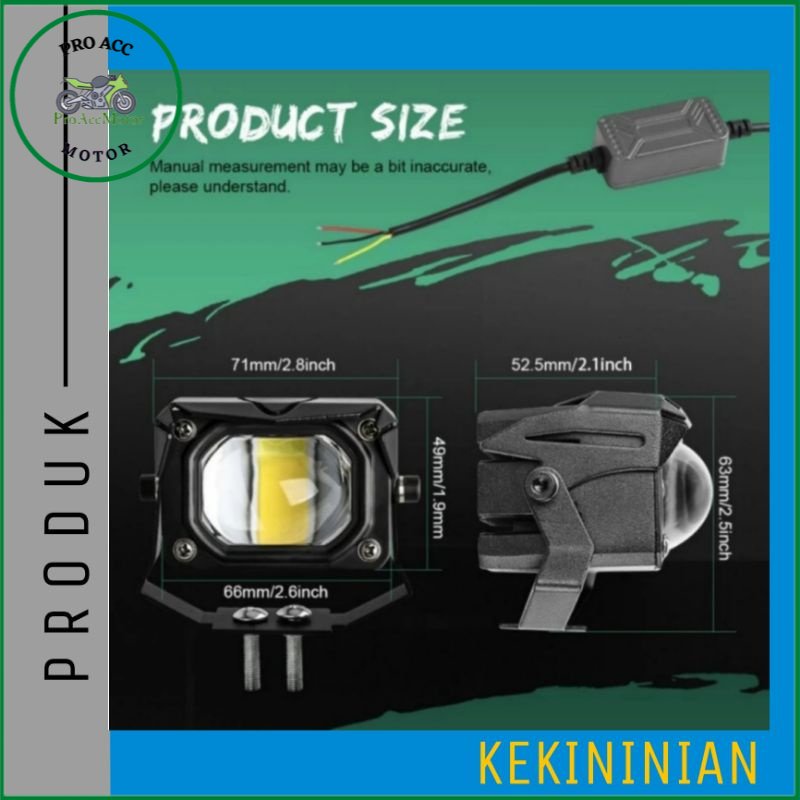 Spesifikasi Produk : - LED Chip : CSP Dual Color - Power 60 W - Input 12 volt DC - Waterproof : IP67 - Socket 3 kabel - Warna : Putih + Kuning - Nyala standby On Hi/Low - Aluminium Heatsink