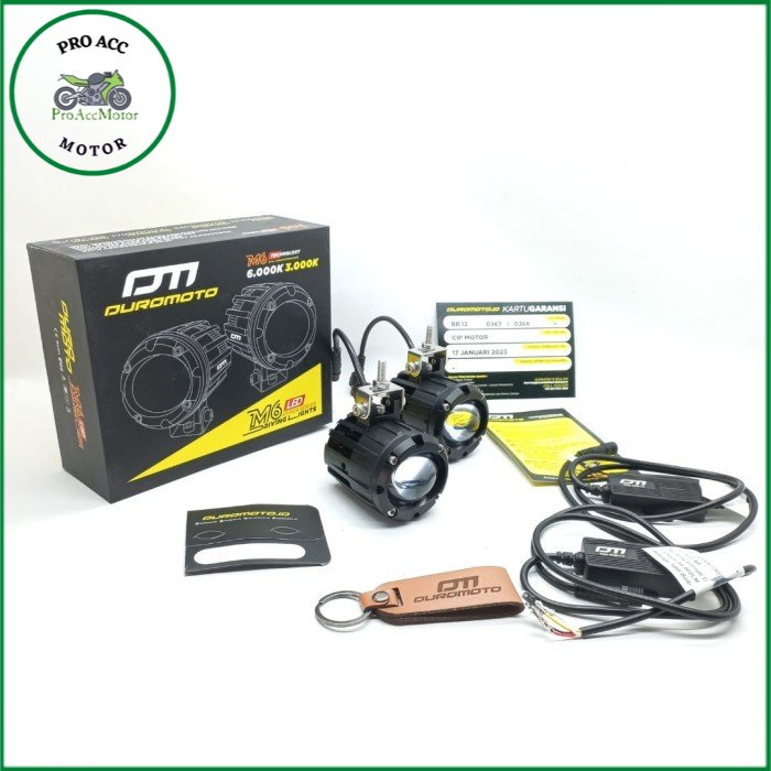 Nama produk : Duromoto M6 Tipe Lampu : Foglamp / Driving Lamp Motor dan Mobil Tegangan : 12V Power : 50 Watt Per Lampu Isi : 1 Lampu Jenis lampu : LED LED : Chip SMD Sertifikat : RoHS, CE, E-mark, ISO9001, FCC DOT, CCC. Tahan air : IP67 Suhu operasi : -40 ℃ ~ 80 ℃ Material : Aluminium,Paduan aluminium,LED chip. Ukuran : OEM Ukuran Standar Warna Sinar : Putih, Kuning dan Kombinasi Putih Kuning Suhu warna : 6000K / 3000K Mode : 3 Mode Lumen : 10000 Lumens Beam : Beam 360