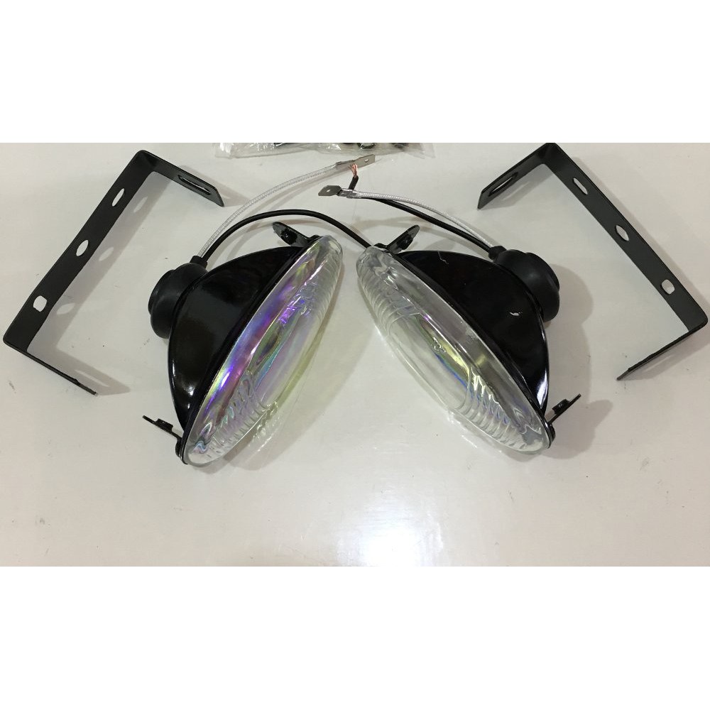 - 1 pasang Lampu tembak Kuning/ Putih - Casing besi, warna hitam - Mika kuning/putih - Jenis bohlam : halogen - Warna cahaya : kuning / putih - Terdapat dudukan dan bracket besi - Diameter : 9 cm