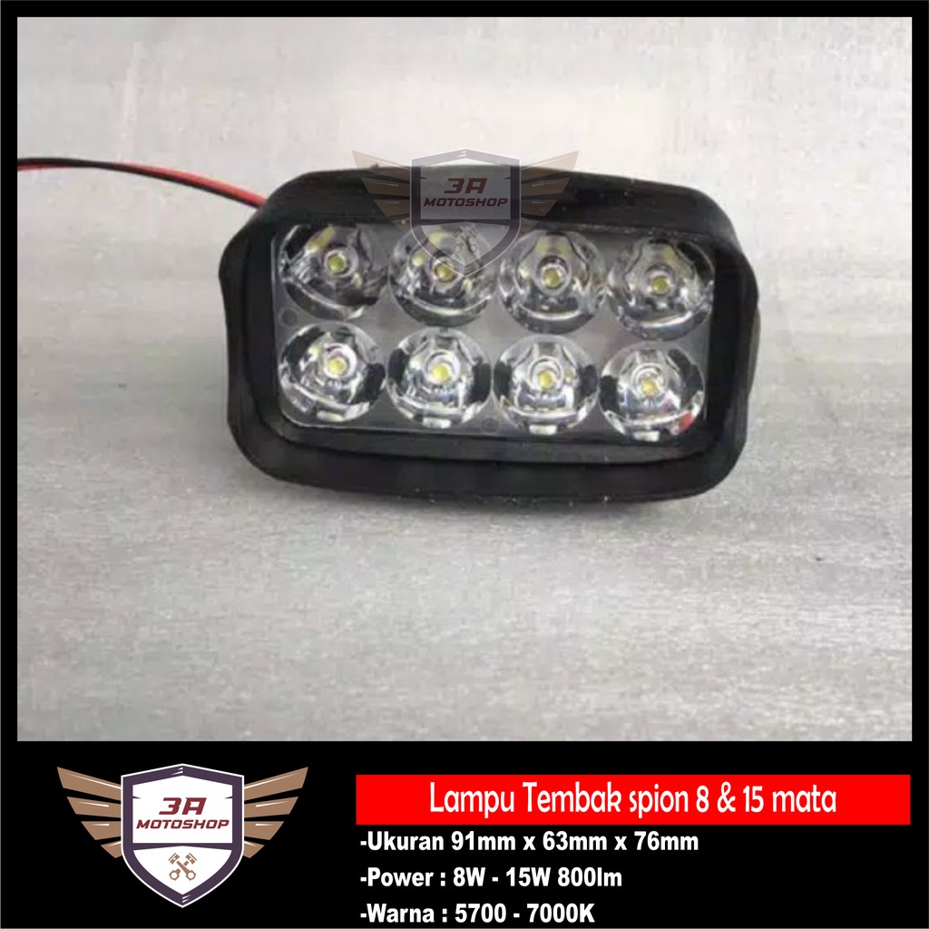 Detail Lampu Tembak Sorot Bracket Spion 8 Mata, 12 Mata, 15 Mata, & 16 Mata Universal Motor Mobil 12V