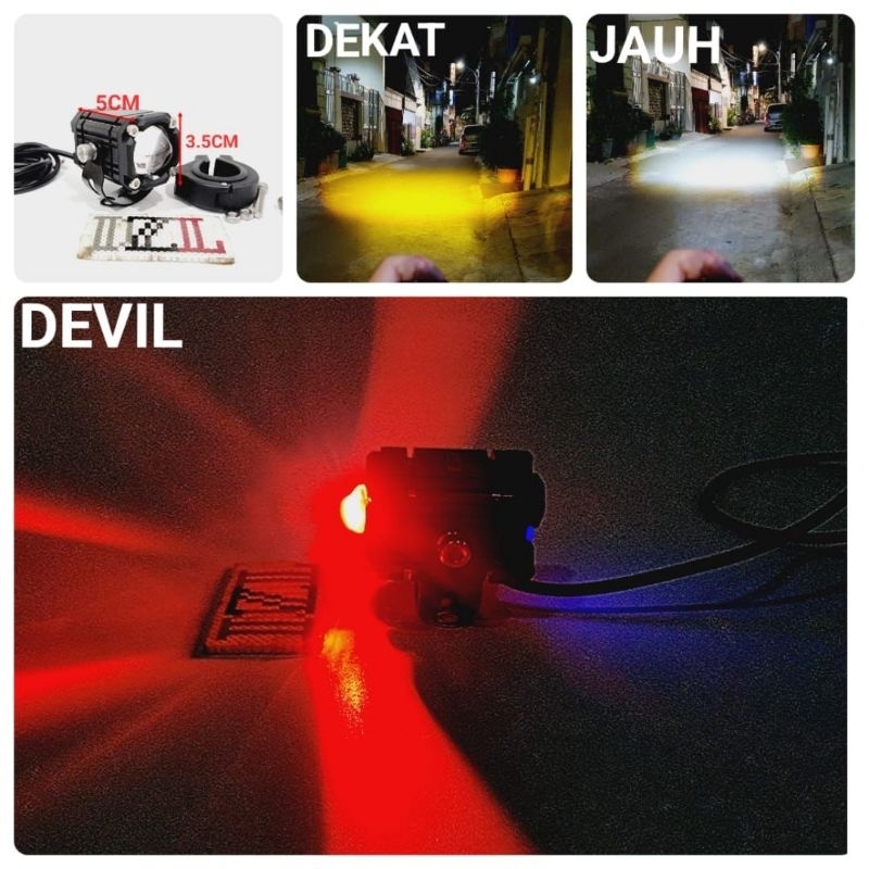 Otomotif > Aksesoris Sepeda Motor > Aksesoris Sepeda Motor Lainnya > Lampu Tembak Sorot Laser Gun LED devil AES D2 Motor Mobil Sorot 30Watt 2 Warna Putih Kuning Mini 30W 30 Watt Lasergun