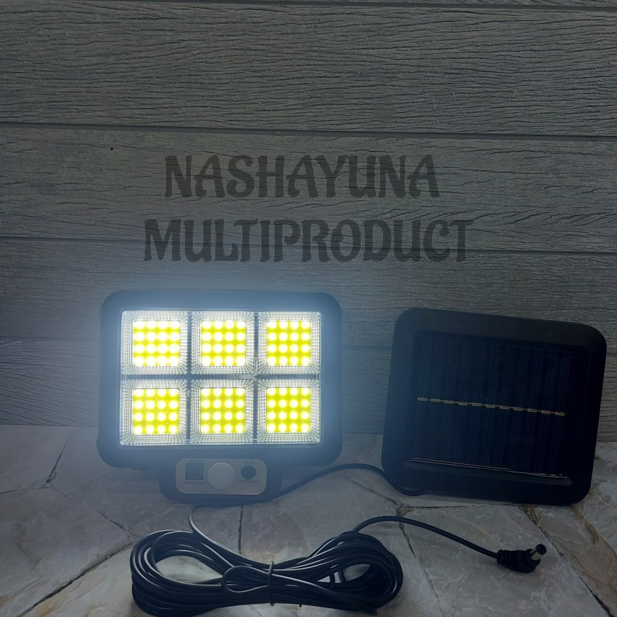 Lampu sorot/taman 96 LED COB ~ cocok digunakan untuk halaman rumah, lampu rumah, kantor, gudang, halaman, kebun dll. ~ Di lengkapi dengan kabel +- 5 Meter antara panel surya dengan lampu, jadi panel surya bisa ditempatkan diluar rumah, sedangkan lampu ditempatkan didalam rumah ~ Lampu juga bisa ditempatkan diluar karena lampu sudah waterproof (tahan air) Lampu dapat diset 3 Mode: Cara masuk mode 1-3 , klik tombol putih 1x masuk mode 1, klik lagi untuk masuk mode 2, klik lagi untuk masuk mode 3 Mode 1 - lampu akan mati , hanya akan menyala jika mendapati gerakan ( menyala selama 30 detik ) kemudian mati kembali Mode 2 - lampu menyala redup , dan akan menyala terang jika mendapati gerakan ( menyala terang selama 30 detik ) kemudian kembali redup Mode 3 - lampu akan terus menyala semalaman (sesuai kapasitas baterainya) Keunggulan Menggunakan Lampu Dinding Tenaga Surya : 1. Lampu & Panel surya bisa dipasang terpisah agar bisa menyerap sinar matahari maksimal 1. Tidak butuh kabel listrik 2. kuat & tahan lama, bisa dipakai tahunan, selama fisik lampu tidak pecah. 3. Listrik didapatkan dari sel surya / tenaga matahari, tidak memerlukan sumber daya listrik PLN 4. Tidak perlu perawatan khusus 5. Sensor gerak, lampu akan menyala ketika ada gerakan dalam jarak 2 meter, dan akan berubah mati dalam 30 detik jika tidak ada gerakan. Sensor ini membantu pemakaian energi lebih hemat. Bahan : ABS + PC Warna sinar : Putih Ukuran lampu : 15cm x 13.5cm