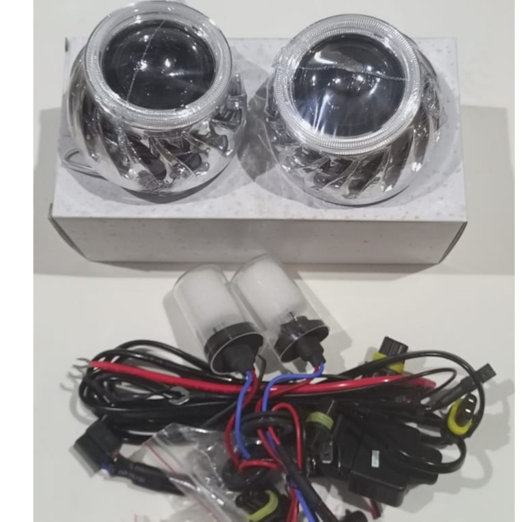 Kelengkapan : - 2 Pc Projecter HID AES - 2 Pc Inverter Angel Eyes CCFL - 2 Pc Bohlam HID skt - 2 Pc Kabel Set HID