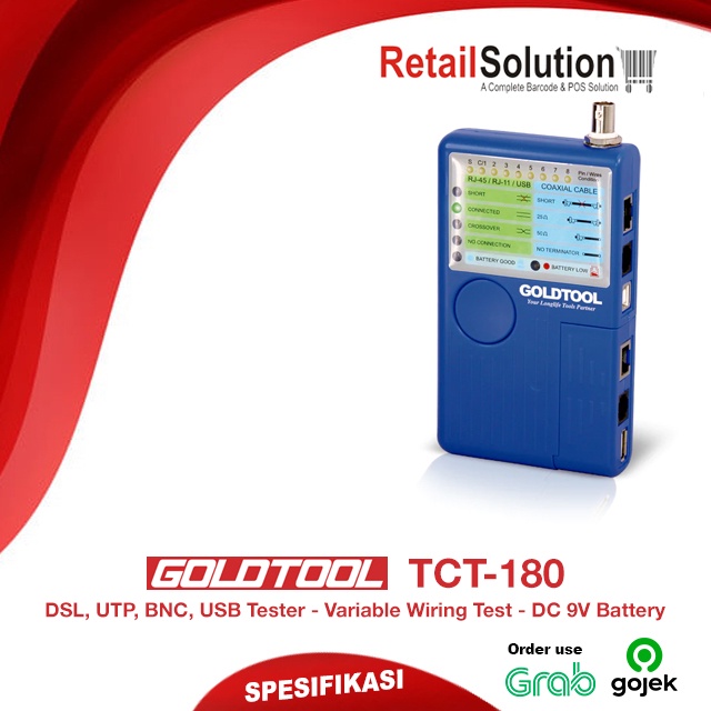 Detail LAN Tester RJ11 RJ12 RJ45 USB BNC - Goldtool TCT180 TC-T180 TCT-180