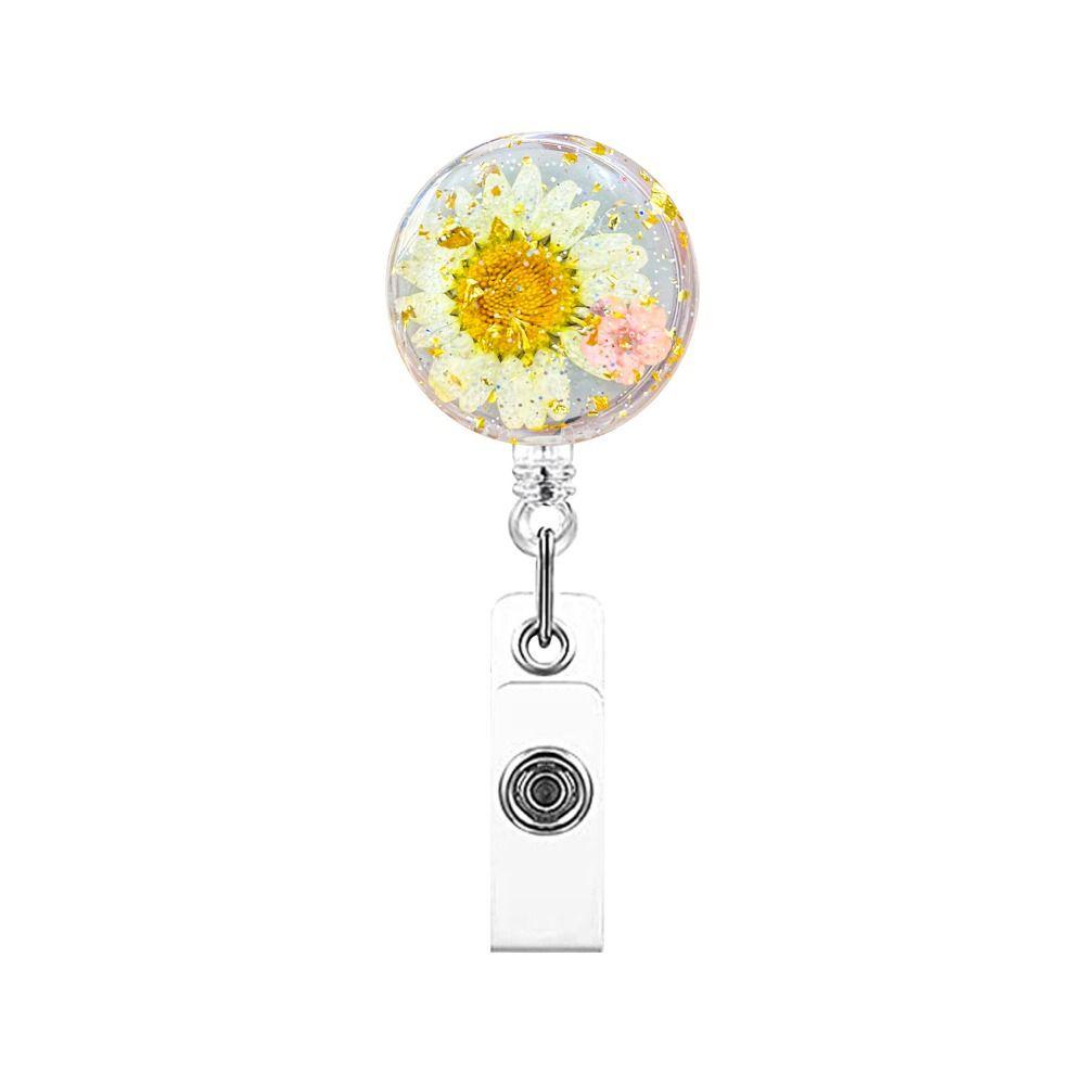 Detail LANFY Badge Reel 1 Pc Guru Kualitas Tinggi Transparan ID Badge Klip Kunci Pemegang Foil Emas Daun Kering Bunga Ditekan Floral Charms Jewelry Card Badge Holder