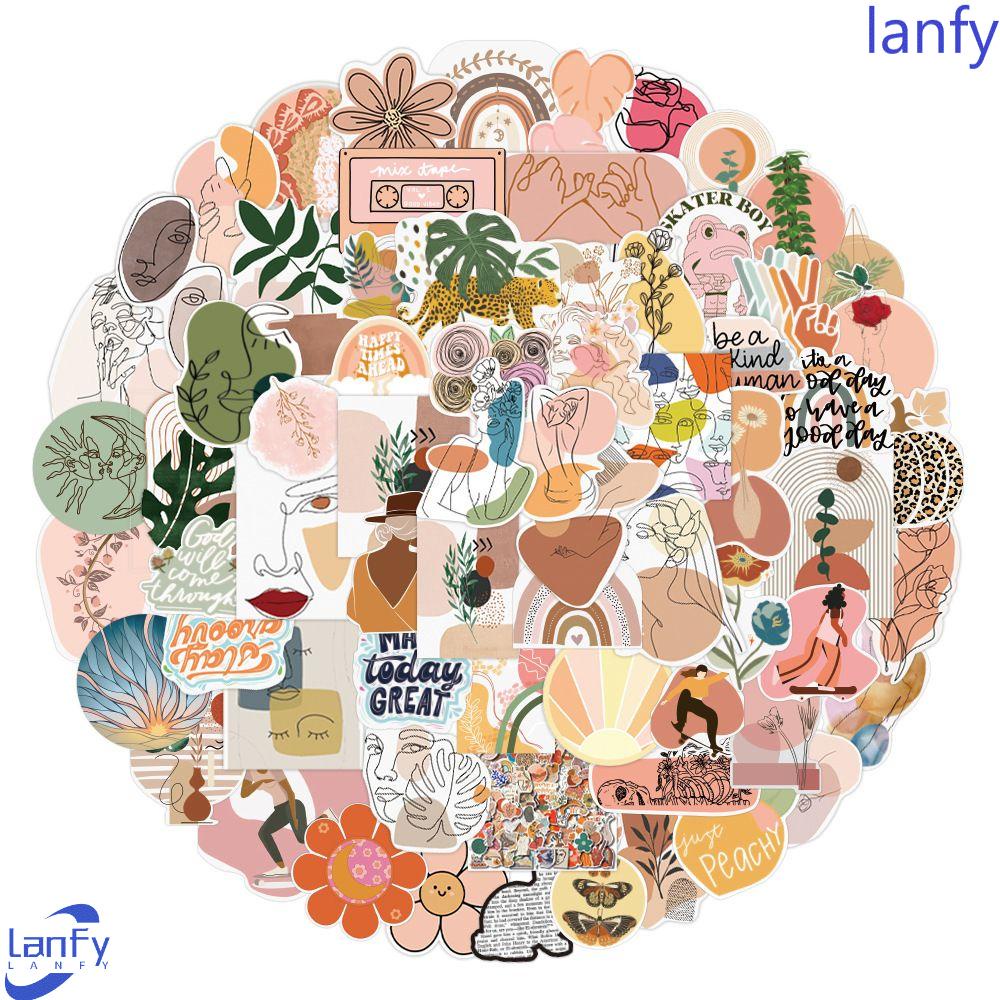 Lanfy Bohemian Aesthetic Stiker Art Kartun Retro Aesthetic Anak Perempuan PVC Decal Mainan DIY Scrapbooking