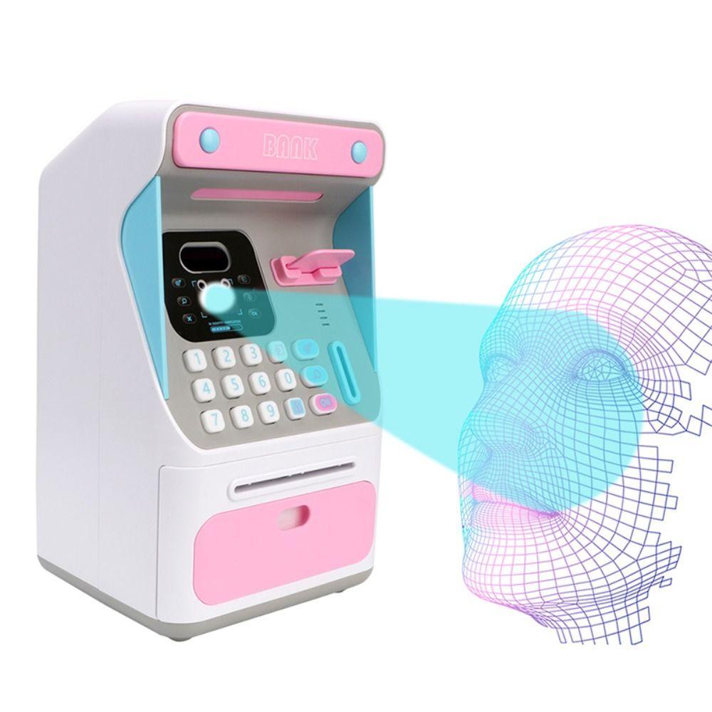 Perkenankan sedikit perbedaan dimensi karena pengukuran manual yang berbeda. Elektronik Piggy Bank Cash Box Kotak Uang Mesin ATM Simulasi Pengenalan Wajah Dispenser Hemat Uang Kata Sandi Tatal Otomatis Hadiah Ulang Tahun Mainan Untuk Anak-anak Kartun Menarik
