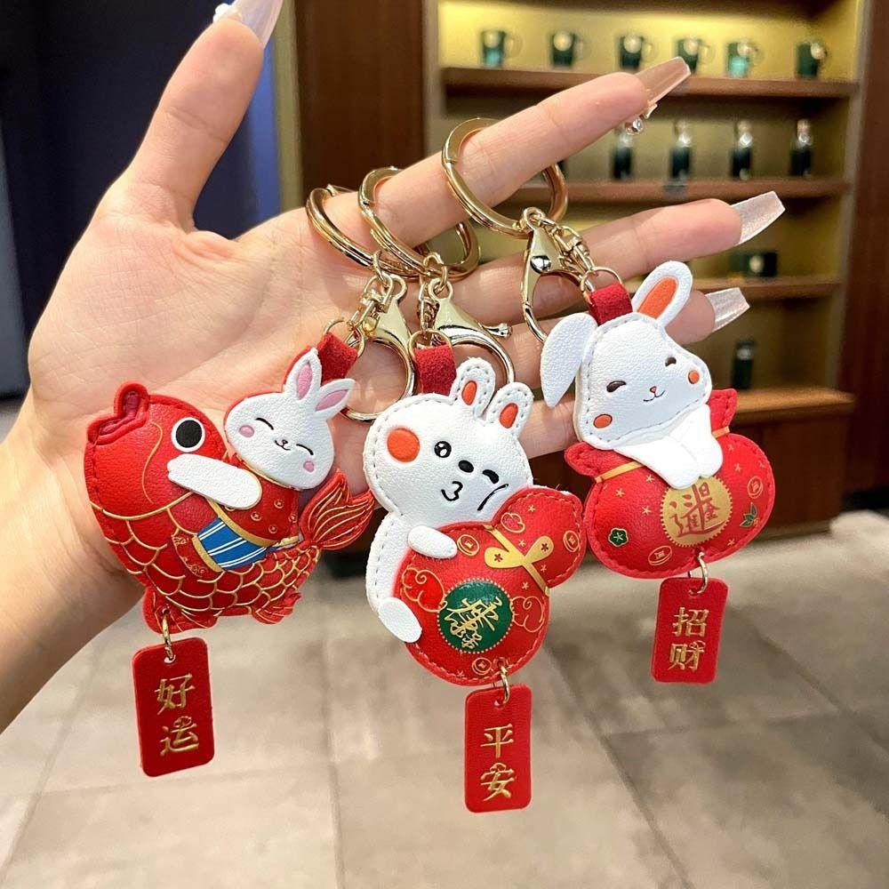 Lanfy Gantungan Kunci Imlek Warna Merah Hadiah Tahun Baru Hadiah Anak Karakter Cina Rabbit Key Pendant