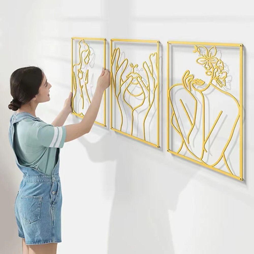 Dekorasi Dinding Logam Daun yang Ditingkatkan】: Terbuat dari 100% besi berkualitas tinggi, rangka tahan lama, mudah dirawat, tidak mudah pudar dan aus, tidak mudah bengkok atau cacat. Abstrak Patung Dinding Ornamen Seni Liontin Kerajinan Logam Gantung Patung Garis Seni Modern Garis Siluet Wanita Tubuh Dinding Dipasang Elegan Minimalis Mewah Menebal Banyak Menggunakan Ringan Mewah