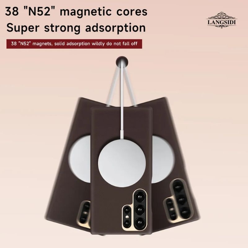 LANGSIDI ORIGINAL Real Leather High Quality Nappa Leather imported from italy Customization Luxury Car interior Stronge Magnetic Metal Frame Camera Lens protection Anti Scratch and no fingerprint Compatible with Magsafe Accessories