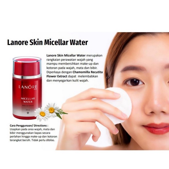 Lanore Skin Micellar Water merupakan rangkaian perawatan wajah yang mampu membersihkan make-up dan kotoran pada wajah, mata dan bibir. Diperkaya dengan Chamomilla Recutita Flower Extract dapat melembabkan dan menyegarkan kulit wajah.